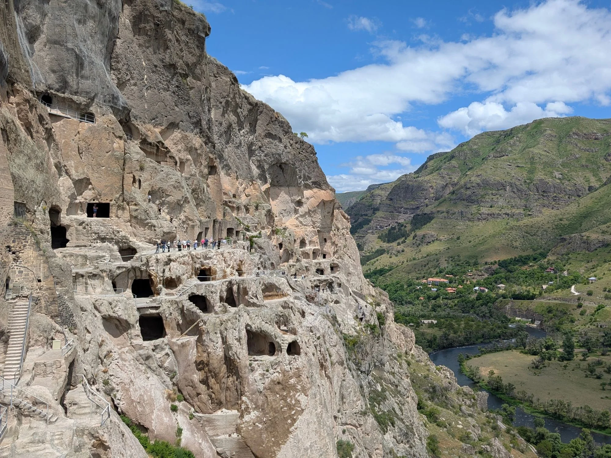 In the late morning, depart for the spectacular Vardzia cave monastery, carved into the cliffs above the Mtkvari River. This 12th-century monastic city once sheltered royalty and monks and still impresses visitors with its frescoes, stone tunnels, and panoramic views.